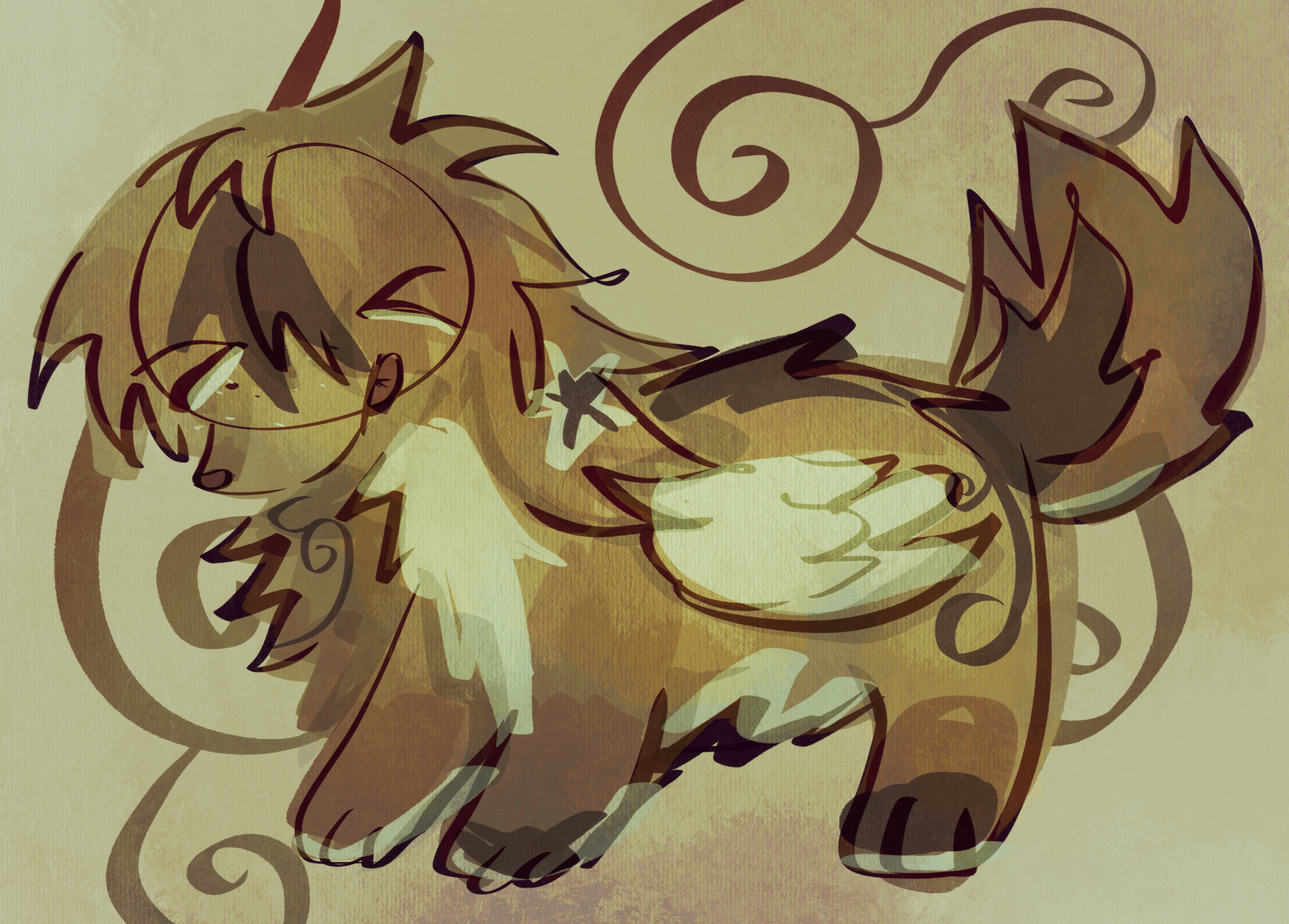 a fully rendered piece of your character that has a more loose, messy style